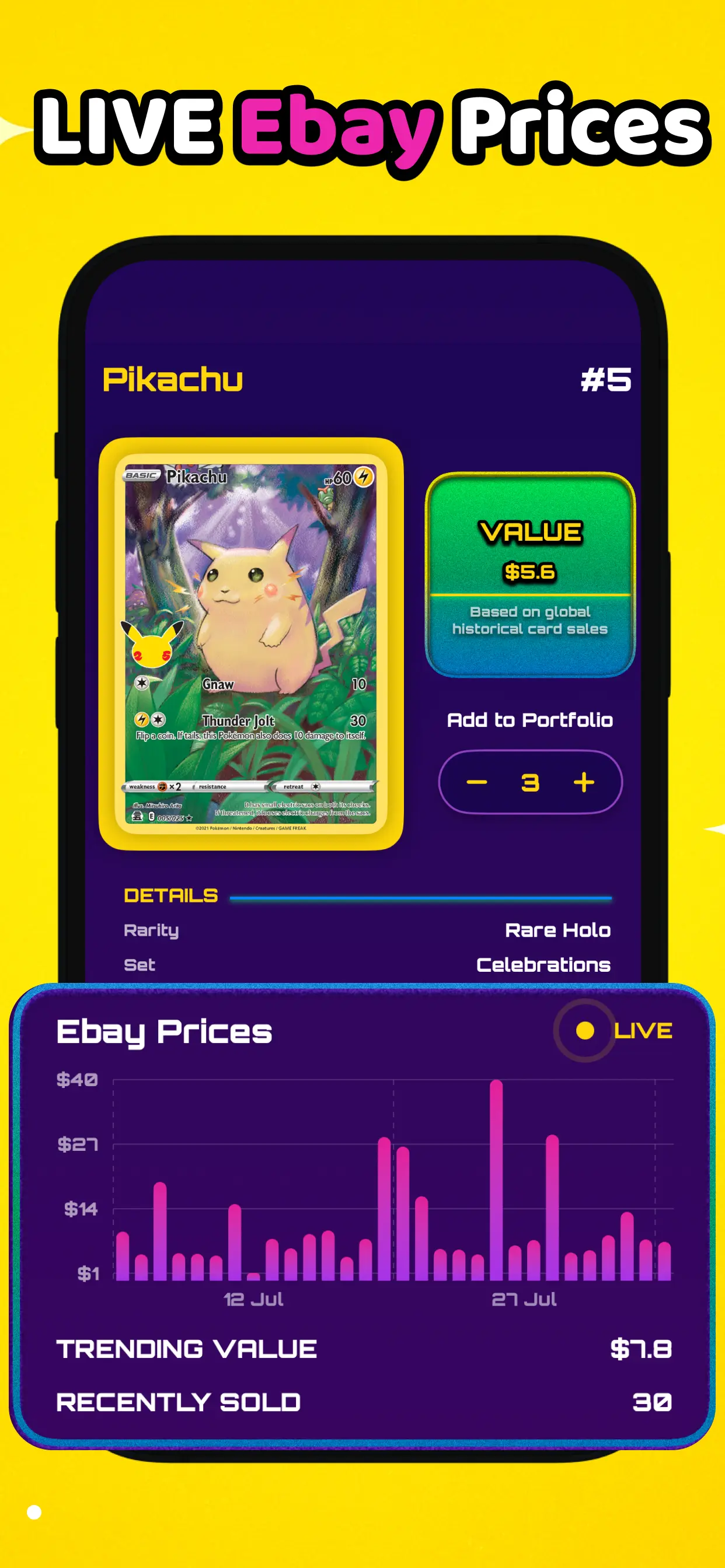 - Market Insights: Stay updated on Pokémon trading card prices and trends so you always know your Pokémon card worth.